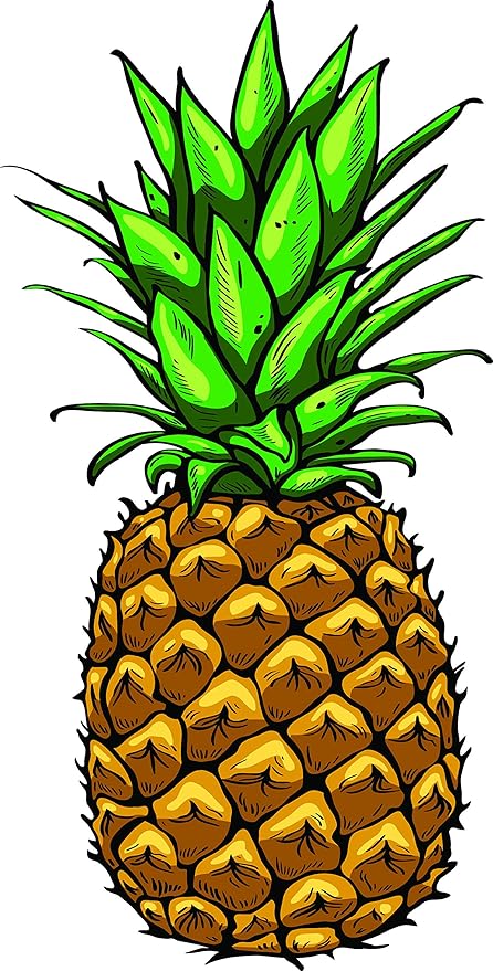 Pineapple Fruit With Green Leafs Cartoon Drawing Simple Design